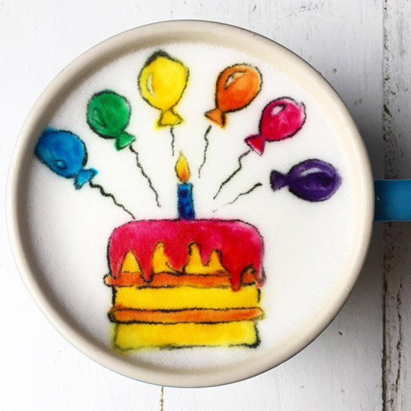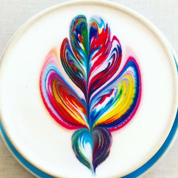 Sve dugine boje su njena inspiracija! Ova devojka na peni kafe kreira žive oblike, upečatljive crteže i ume da sklopi boje tako da u šoljicu ne možete da prestanete da gledate. Ako slike na kafi menjaju raspoloženje, njene su toliko veselih boja da nema tog ružnog dana koji ne može biti popravljen!