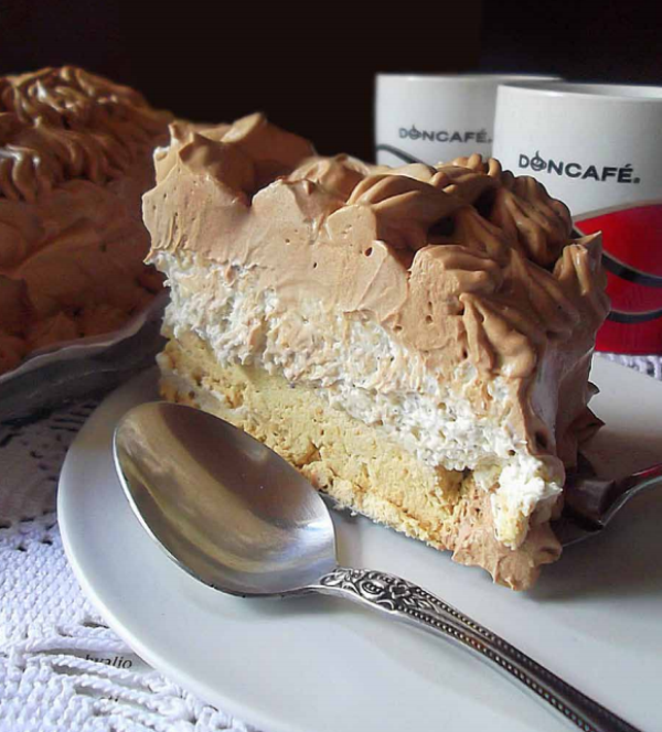 Da biste napravili koru umutite mleko i šlag, dodajte kafu, a potom šećer i keks. Rasporedite smesu po tacni, a možete da koristite i okrugli kalup. Potom pređite na fil. Mutite šlag, šećer i mleko, dodajte ostatak i premažite koru. Fil umutite penasto, premažite i ostavite tortu u frižideru.